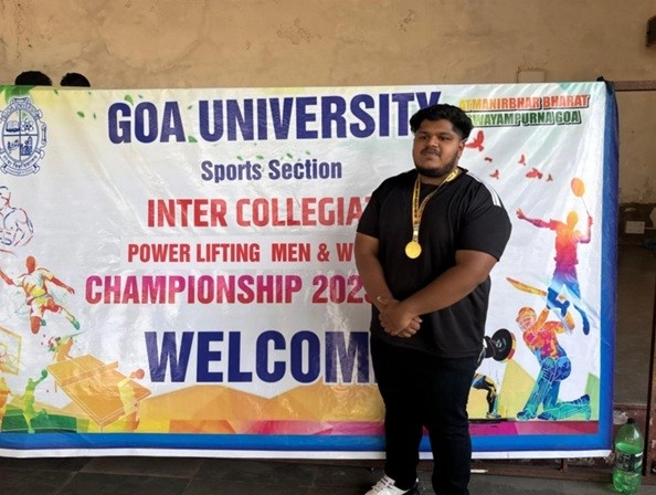 Philosophy major Mellysun Reevs winning the Gold Medal at the Inter-Collegiate Power Lifting Championship 2026 organised by Goa University