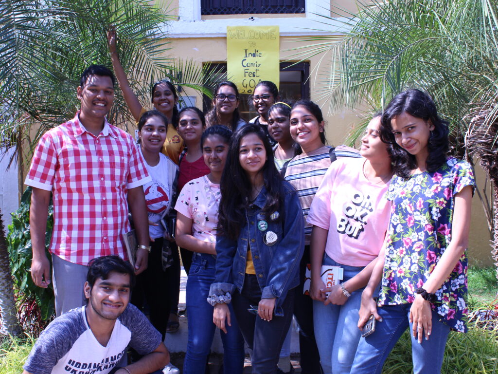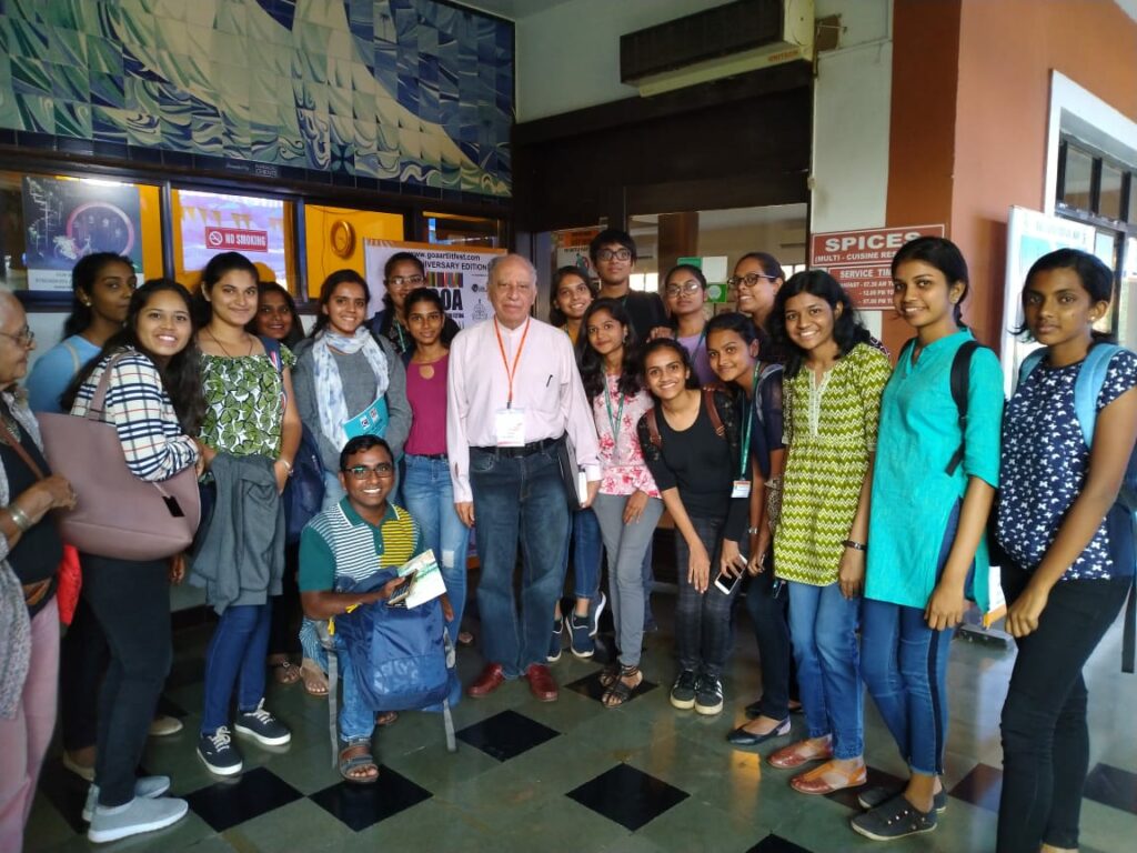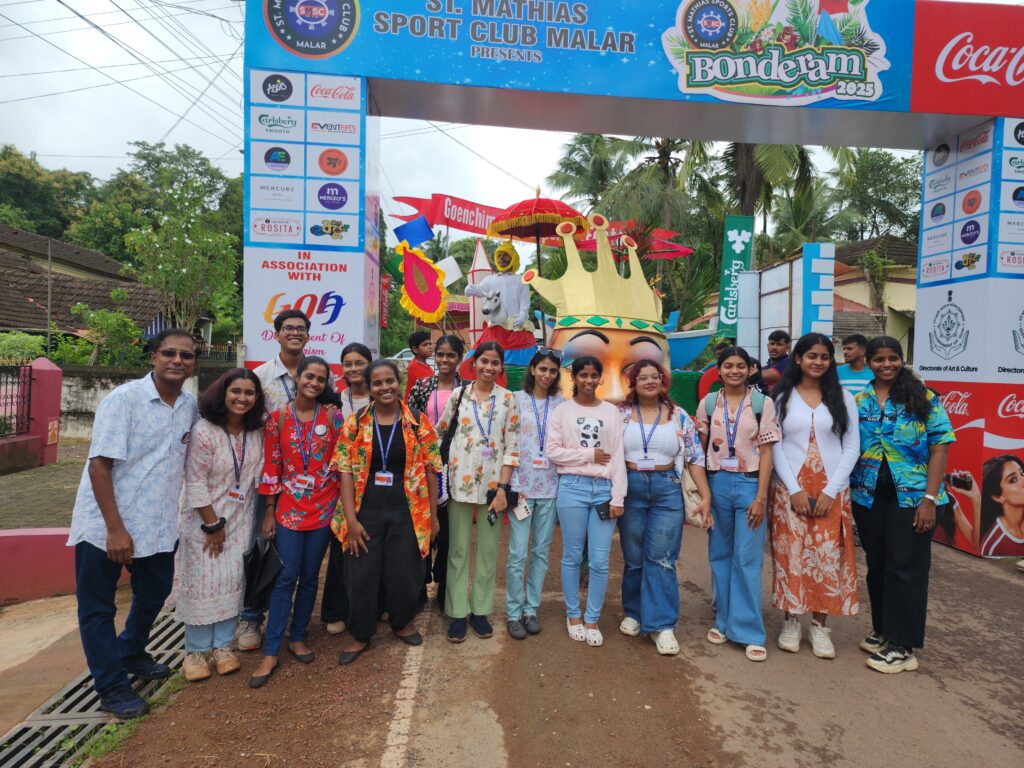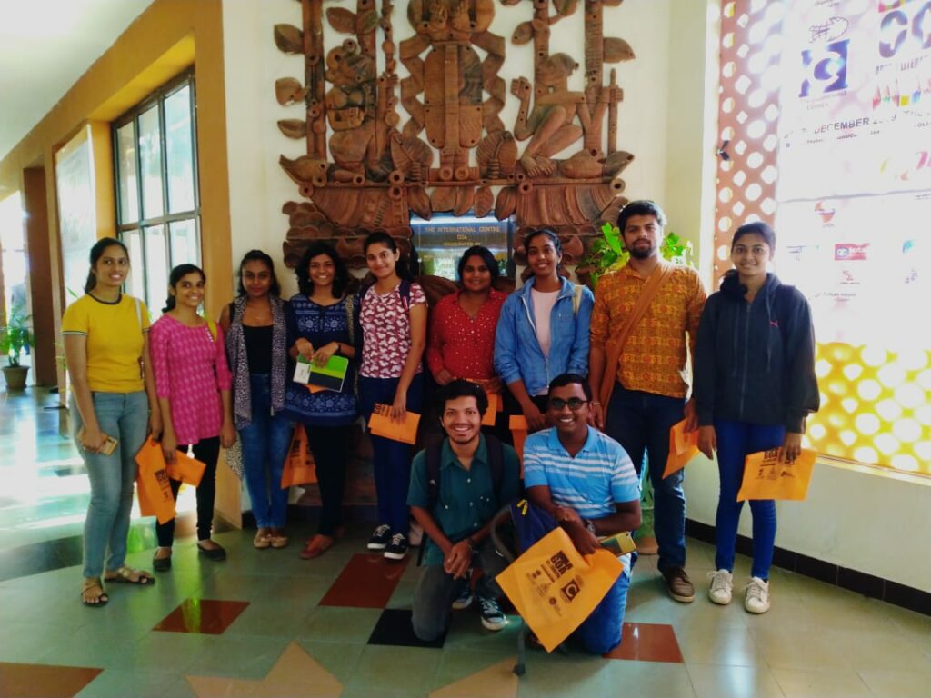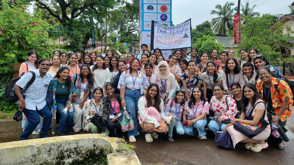The department annually organized fieldtrips, and study tours to Mumbai, Jaipur, and within Goa itself. These provide opportunities to the learners to test their in-class learning in real life situations as well as to understand the functional diversity in learning spaces. We have visited Jaipur Literary Festival, Kala Ghoda Arts and Literary Festival, Mumbai, Goa Arts and Literary Festival, Serendipity Festival, Goa, Museum of Goa, Mumbai ComicCon, etc. During the study tour to Mumbai for Kala Ghoda , ComicCon, and field trip to the GALF festival, the students are encouraged to attend as many events as they can from a number of areas like Art, Literature, Theatre, Stand-up, Music and Film. This allows the students to be independent while on tour, developing people-skills and networking opportunities, broadening the students perception of arts and literature. During the fieldtrip the students are able to meet and interact with authors, poets, critics, publishers and curators from various fields from India and abroad.