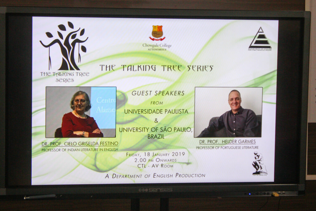 These are a series of lecture series, meet and greets, discussion forums etc. where students meet various eminent personalities from literary and academic fields. In the year 2019- 2020 guests like art critic Mr. Ranjit Hoskote, well-known author and translator Mr. Jerry Pinto, and last but not the least comic illustrator and author Ms. Vidyun Sabhaney interacted with our students. Over the years we have had Padmashree awardee Shri. Shashi Deshpande, noted Goan award-winning writers join us for this event.